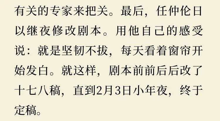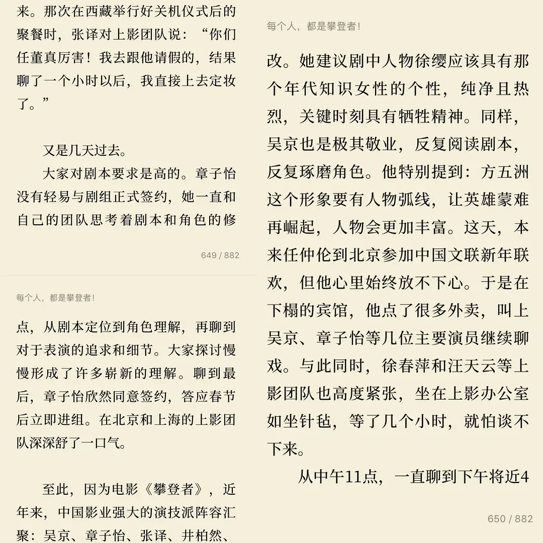 但之所以加进来,是因为章子怡确实有过改剧本的情况。当时合作吴京拍《攀登者》,《攀登者全纪录》里详细叙述了合作过程,上影集团董事长任仲伦日以继夜修改剧本,前前后后改了十七八稿,才最终定稿,而章子怡此前没有轻易与剧组正式签约,她一直和自己的团队思考剧本和角色的修改,提出了很多建议,直到完全满意才欣然同意签约。