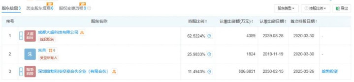 今年3月26日,华为哈勃首次入股芯曌科技,目前,华为哈勃对芯曌科技的认缴出资额为806.88万元,持股比例为11.4943%,为第三大股东。