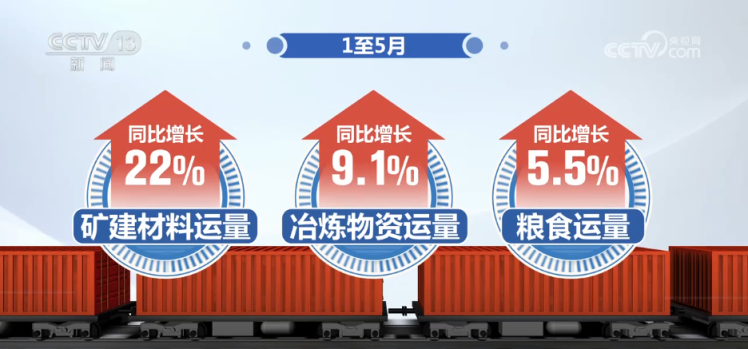 大宗物资运输保障有力。新疆地区的煤炭运输,晋南地区的疏港铁矿石运输等重点项目都开辟了绿色通道,确保高效送达。1至5月,国家铁路发送煤炭8.45亿吨,其中电煤5.75亿吨,铁路直供电厂存煤保持较高水平,矿建材料、冶炼物资、粮食运量同比分别增长22%、9.1%、5.5%。